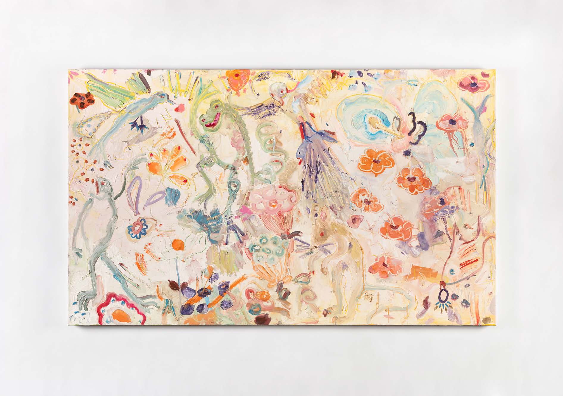Muzquiz’s works provide a direct encounter with her wit and her engagement with personal narratives and memories. Her paintings of women surrounded, if not enveloped, by flower blossoms, are recollections of memories of places, oozing with nostalgia. Viewers are invited to share her reminiscences of a semi-imaginary world, recalling her Tijuana birthplace and childhood vacations. The artist’s images and motifs feel familiar, rendered in expressionist brushstrokes. … READ MORE